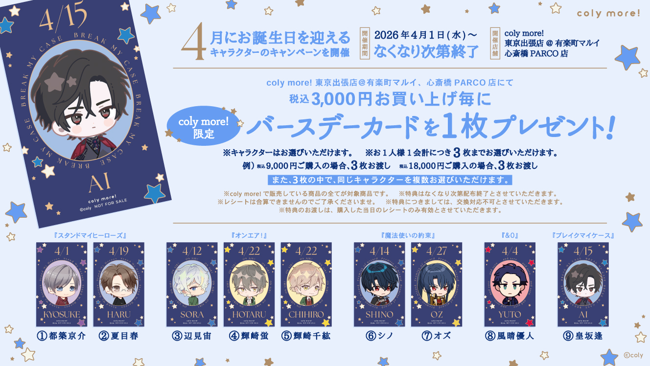 開催店舗:coly more! 東京出張店@有楽町マルイ、心斎橋PARCO店