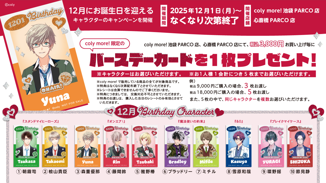 開催店舗:coly more!池袋PARCO店、心斎橋PARCO店